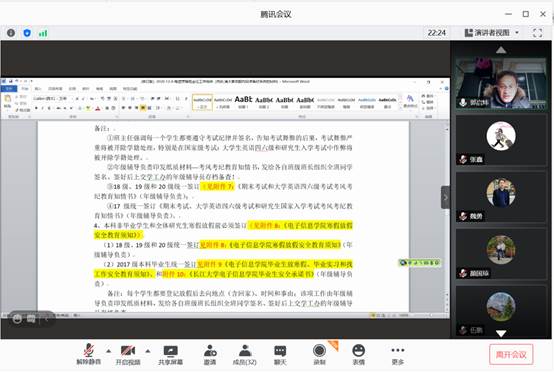 期末将至,为贯彻落实寒假期间学校对于学生安全教育及管理工作方面的要求,为把期末近期学生日常教育与管理工作做实、做好,确保天游同学能够提高自我防护意识,度过一个安全快乐的假期。2020年12月4日,天游ty8线路检测中心登录以腾讯会议的方式召开了班主任、辅导员工作大会,会议由郭启炜书记亲自主持,本次会议以安全教育为中心,并展开寒假前后学生安全教育与管理工作部署。