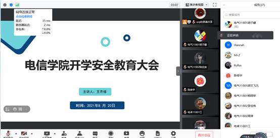 【电信简讯】天游ty8线路检测中心登录召开2021年秋季开学安全教育主题班会