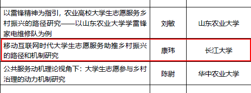 (通讯员 滕亚楠 李蒙)近日,共青团中央公布了2021年度共青团实践育人工作课题立项入选名单,天游ty8线路检测中心登录申报的《移动互联网时代大学生志愿服务助推乡村振兴的路径和机制研究》项目获得立项。
