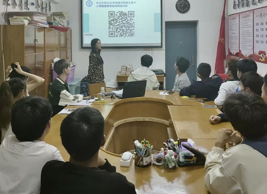 心理健康教育是促进学生身心健康、塑造健全人格品质,有效培养担当民族复兴大任时代新人的重要环节和有效途径。近年来,大学生由于心理问题导致的危机事件频频发生,引导大学生关注自身心理健康已迫在眉睫。而新生入学之初,会出现各种适应方面的困惑,对于心理健康与心理咨询也存在着一定误解。因此,11月11日晚上7点,天游ty8线路检测中心登录针对全体新生骨干开展心理健康教育培训,培训于新风公寓学工办党员活动室进行线上线下同步开展,以给学生接种心理疫苗,对于可能出现的心理困惑有所准备,指导新生骨干掌握识别与应对心理危机的技能为目的,为天游心理健康教育的推进提供有效帮助。