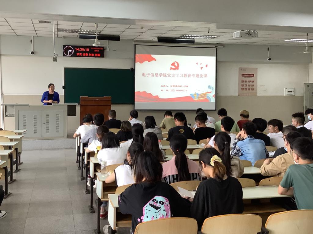 2021年6月3日,天游ty8线路检测中心登录党史学习教育专题党课在12教102举行,本次党课由分党委书记刘逸主讲,由分党委副书记郭启炜主持,全体学生党员参加。