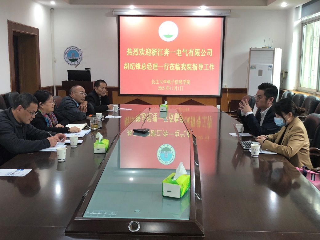 (通讯员 沈马锐)11月1日下午,浙江奔一电气有限公司战略规划部总监胡纪峰一行莅临天游,与天游就校企合作事宜进行交流洽谈。天游党委书记刘逸、党委副书记郭启炜、副院长蔡昌新、电气系副主任杨友平出席会议。