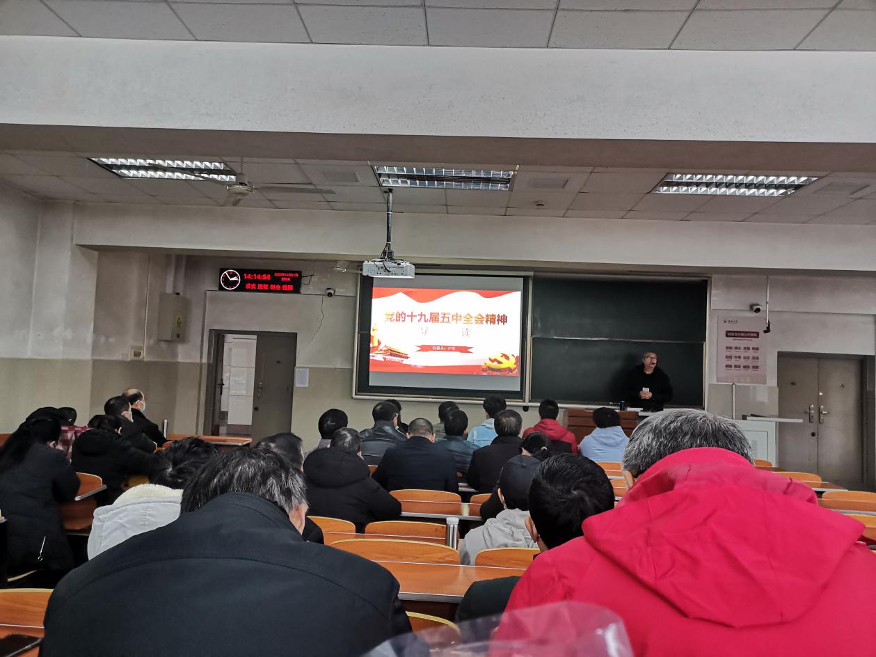 为了更好地学习贯彻党的十九届五中全会精神,按照学校党委统一部署,1211日下午2点,天游邀请了马克思主义学院卢军教授在主教108为学院师生解读“党的十九届五中全会精神”,全体教职工和学生党员参加了此次学习报告会。