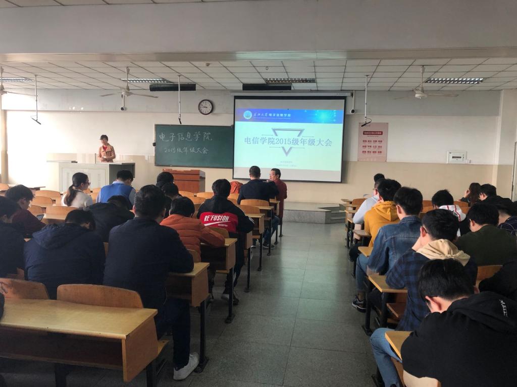 3月20日上午8时40分,天游2015级学生年级大会在东校区12教202召开。学院分党委副书记郭启炜携2015级辅导员康玮、艾林出席本次会议,会议由辅导员康伟主持。
