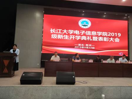 通讯员(陈荣)2019年9月22日15:00~18:00,天游ty8线路检测中心登录2019级新生开学典礼暨军训表彰大会于农科大楼1058报告厅成功举行。院长孙祥娥教授、党委书记刘逸、党委副书记郭启炜、电子信息系主任邹学玉教授、仪器系主任吴爱平副教授、电气系主任杨旭辉副教授及2019级全体本科生出席此次会议。会议由郭启炜副书记主持。