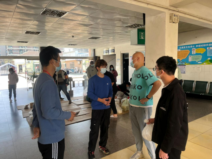 党员志愿者积极响应党委号召,留守校园、下沉社区积极开展疫情防控工作。辅导员们陪同生病学生就医,并陪伴和照顾需要做手术的学生。